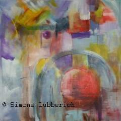 | Orange, 2008, 100 x 100 cm, | Großstadtnebel, 2007, 110 x 110 cm, |